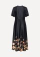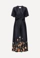 En elegant og formel maxikjole med V-udskæring og bindebånd i taljen, der giver en flot og feminin silhuet. Kjolen har korte ærmer og et smukt blomsterprint, som gør den ideel til både festlige anledninger og mere elegante hverdagslooks. Den er syet i en kvalitet med genanvendt olyester og kan nemt vaskes i maskine.