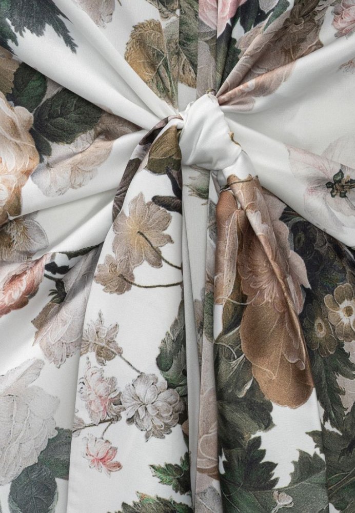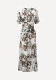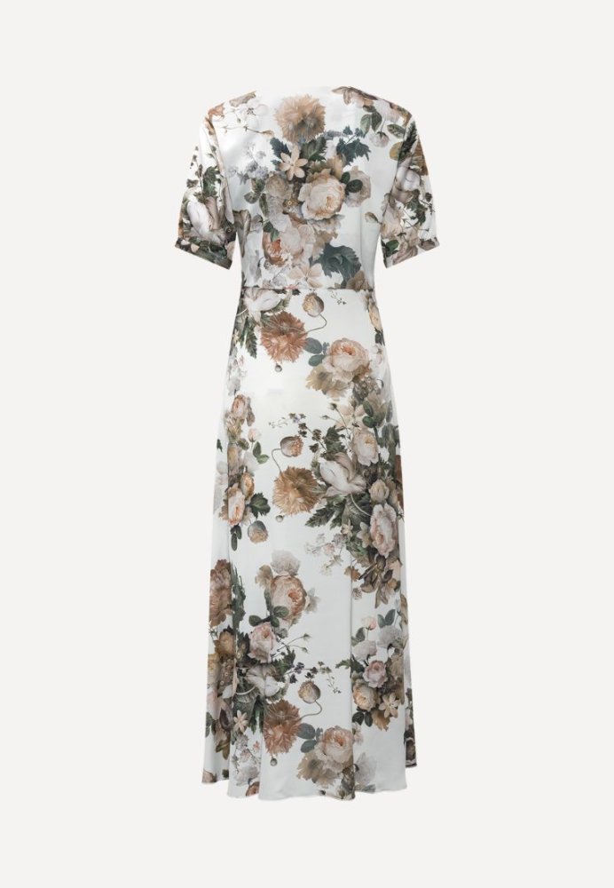 En smuk og formel maxikjole med V-udskæring og bindebånd i taljen, som giver et feminint og elegant look. De korte ærmer og den lange længde gør den ideel til sæsonens fester, sommerbryllupper og andre særlige lejligheder, hvor du gerne vil være velklædt uden at gå på kompromis med komfort. Kjolen er nem at style op og ned alt efter sko og accessories.