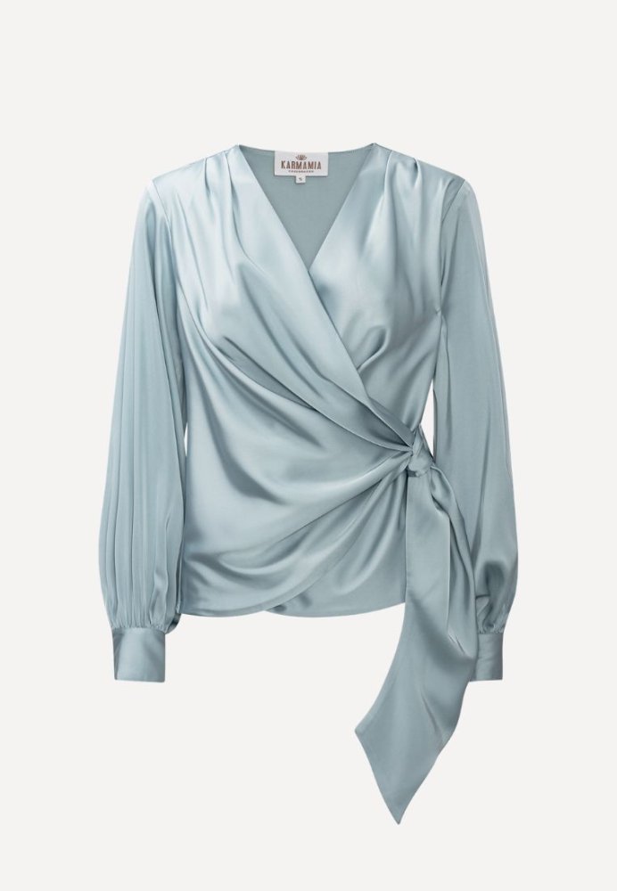 Ines Blouse fra Karmamia er en feminin og elegant bluse med et smukt draperet udtryk. Halsudskæringen falder blødt omkring overkroppen, mens et satinbånd ved taljen fremhæver silhuetten og giver et flatterende look. De lange ærmer afsluttes med brede manchetter, som fuldender det stilrene design. Blusen er udført i en eksklusiv semi-rich satin, der gør den ideel både til festlige anledninger og til et elegant hverdagsoutfit.