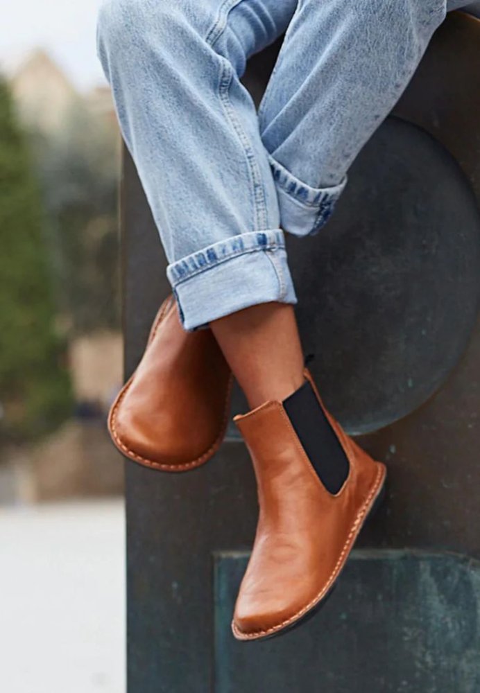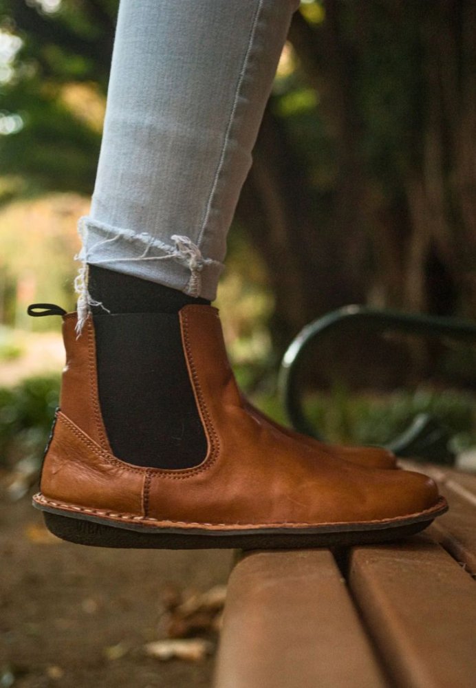 HELSINKI Leather Cognac Brown er en klassisk og slidstærk unisex Chelsea-støvle, der forener tidløst design med høj komfort. Modellen har elastiske sider og praktiske hælstropper, så den er let at tage af og på, og dækker anklen for et elegant udtryk. Den ergonomiske og lette konstruktion former sig efter din fod og bliver mere behagelig for hver gang du bruger dem – perfekte til både hverdagsbrug, arbejde og fritid.