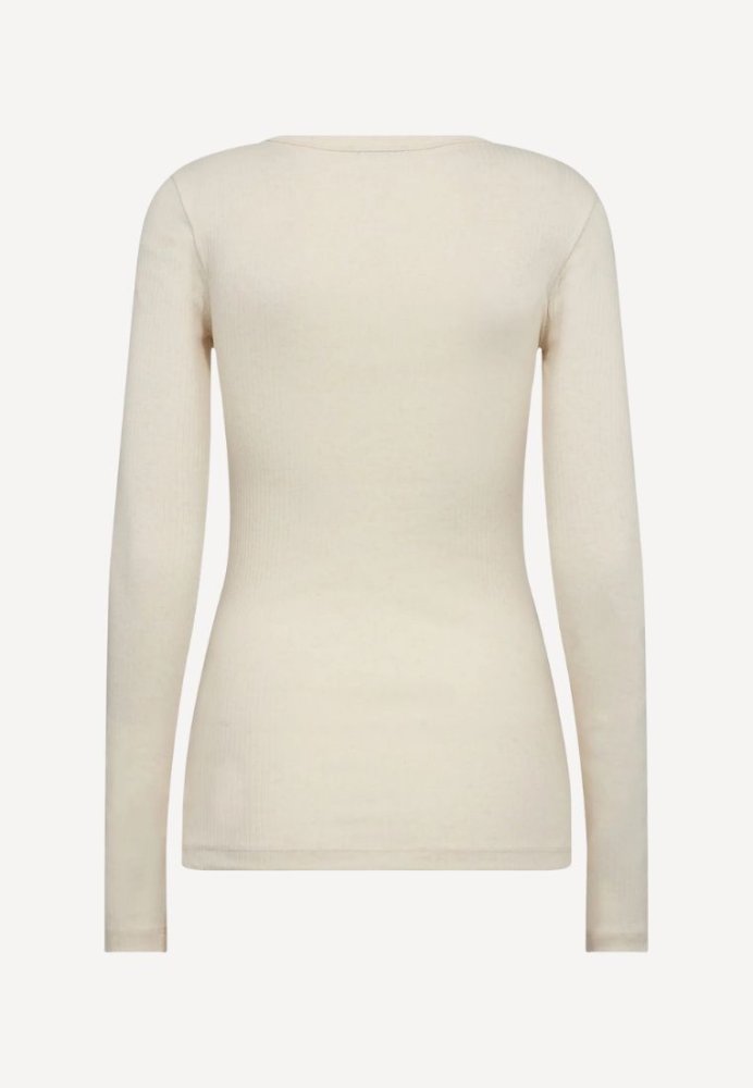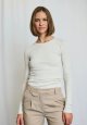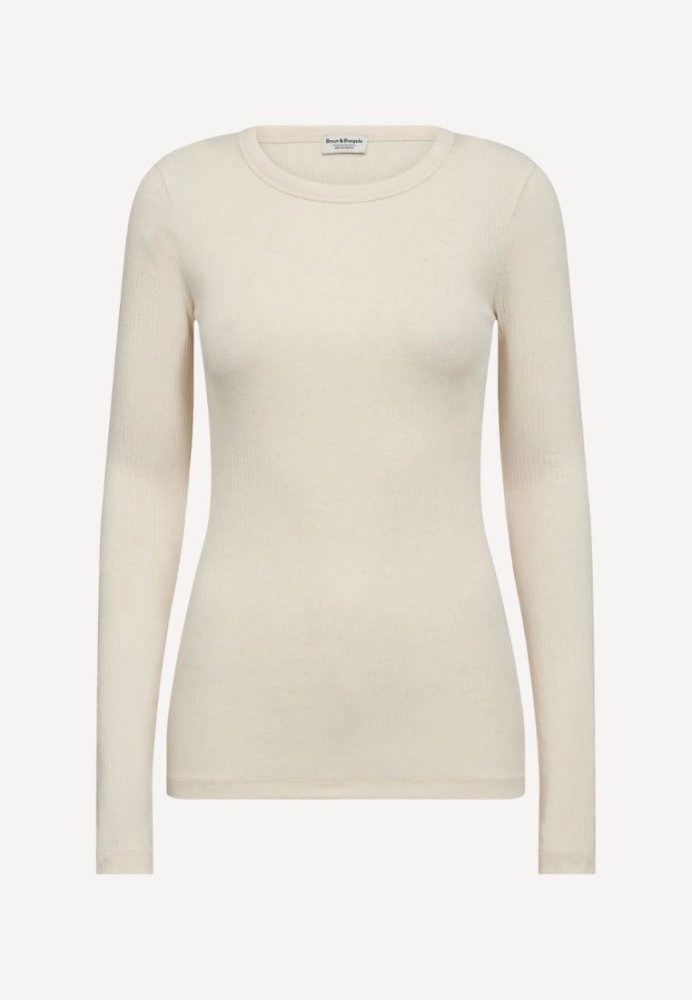 Margrethe er en langærmet top med regular fit, der kombinerer komfort og enkel elegance. Toppen er lavet af en blød og behagelig kvalitet med 98% bomuld og 2% elastan, som sikrer en fleksibel pasform og god bevægelsesfrihed. Den off white farve gør den til et alsidigt basisitem, der passer til mange outfits.