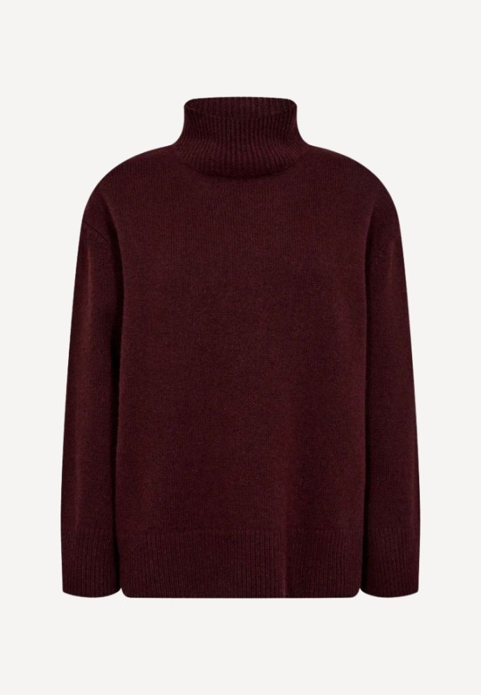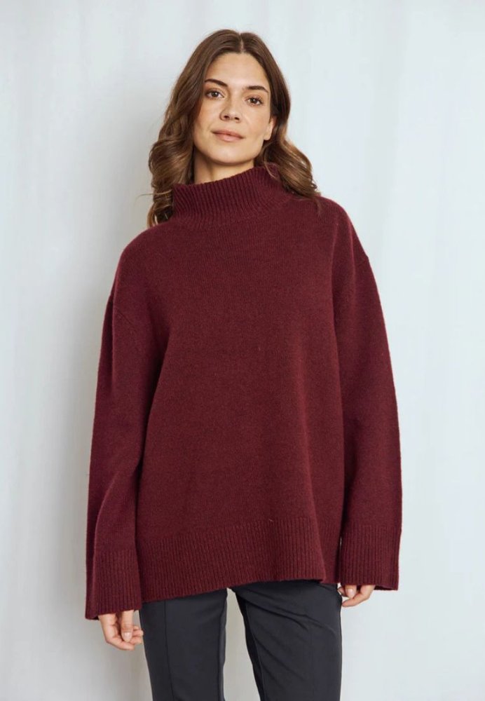 Mali er en kraftig strikket sweater med høj, stående krave, lavet i en blød blanding af 85% merinould og 15% bomuld. Sweateren har ribstrikdetaljer ved krave, ærmer og bund, hvilket giver en klassisk og elegant finish.