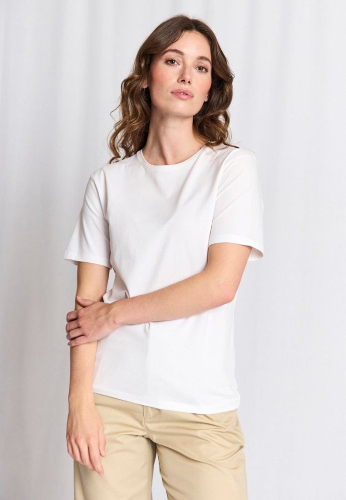 En blød og behagelig fitted T-shirt fra Bruun & Stengade, fremstillet i bomuld med lidt stretch for ekstra komfort. En enkel, velsiddende klassiker, der fungerer til enhver dag og ethvert outfit.