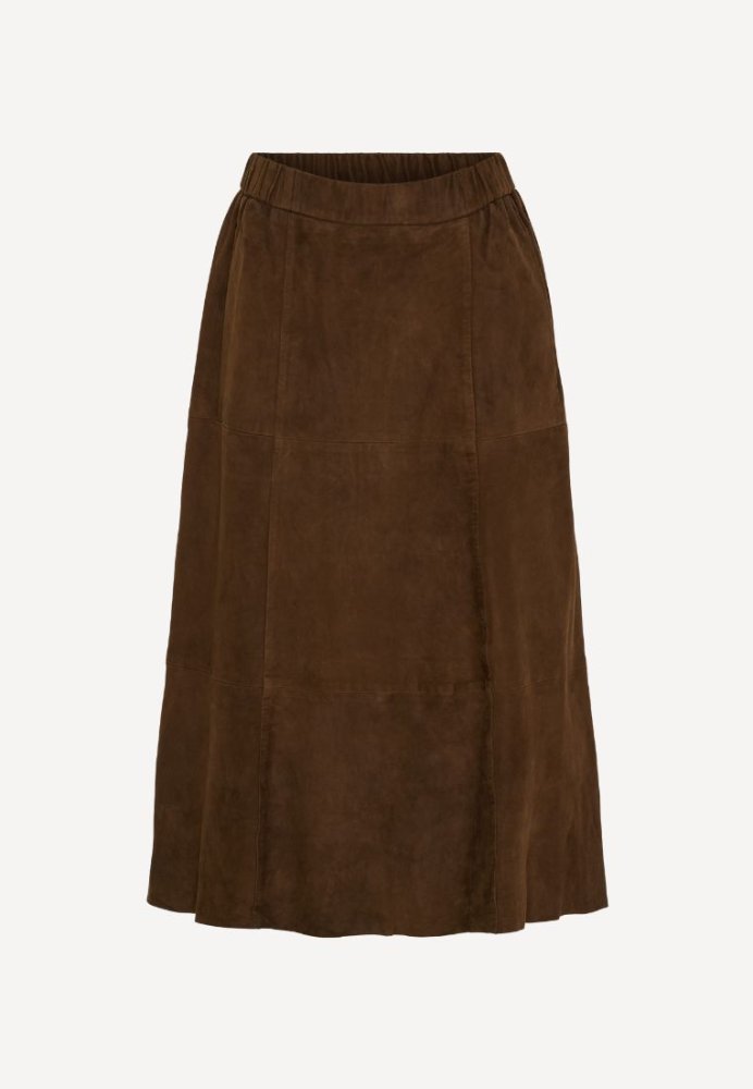 Midi A-shape nederdel i blødt ruskind med beklædt elastik i taljen.