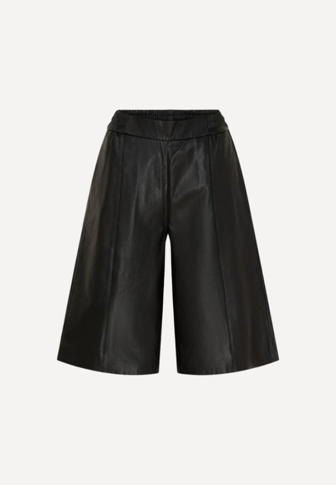 Leather Culottes i blødt lammeskind giver et tidløst og luksuriøst touch til garderoben. De sorte culottes har en afslappet pasform, der kombinerer komfort med en moderne silhuet – perfekt til både hverdag og fest.