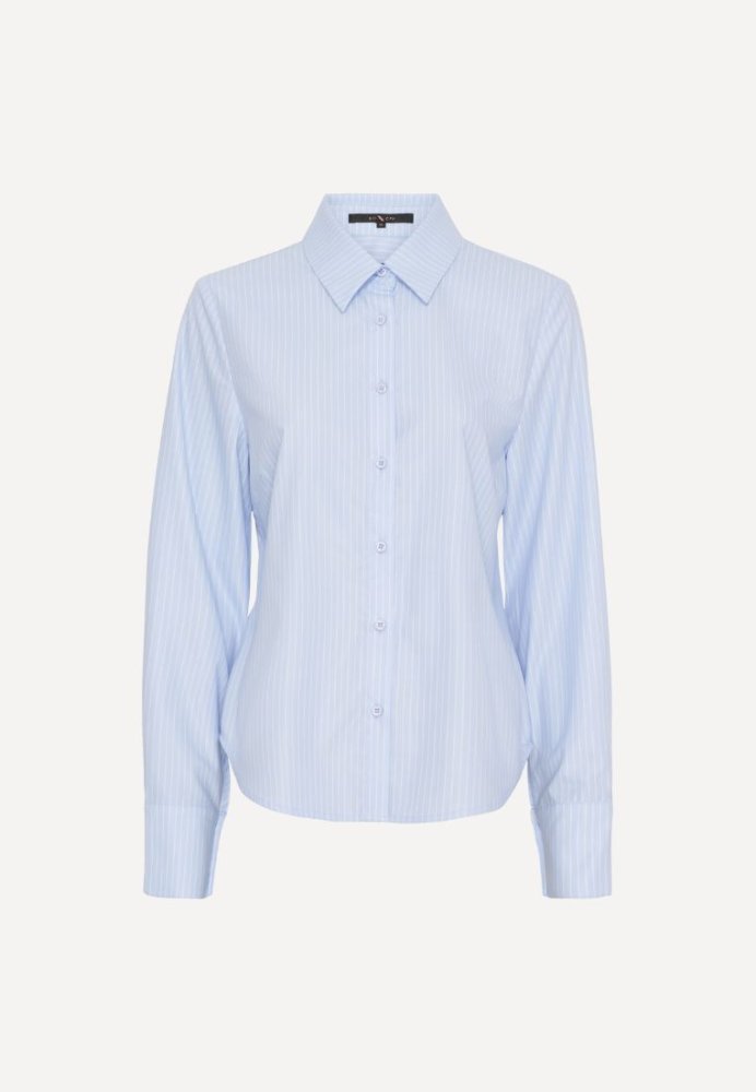 Klassisk og tidløs skjorte i en blød og behagelig bambusblanding i lyseblå med hvide striber. Skjorten har lange ærmer med manchetter, klassisk krave, som giver et elegant og rent udtryk. Materialet føles silkeblødt mod huden og har naturlige antibakterielle egenskaber, der sikrer komfort hele dagen. Stoffets stretch giver god bevægelsesfrihed, og skjorten er strygefri – hæng den blot op efter vask, og den er klar til brug.
