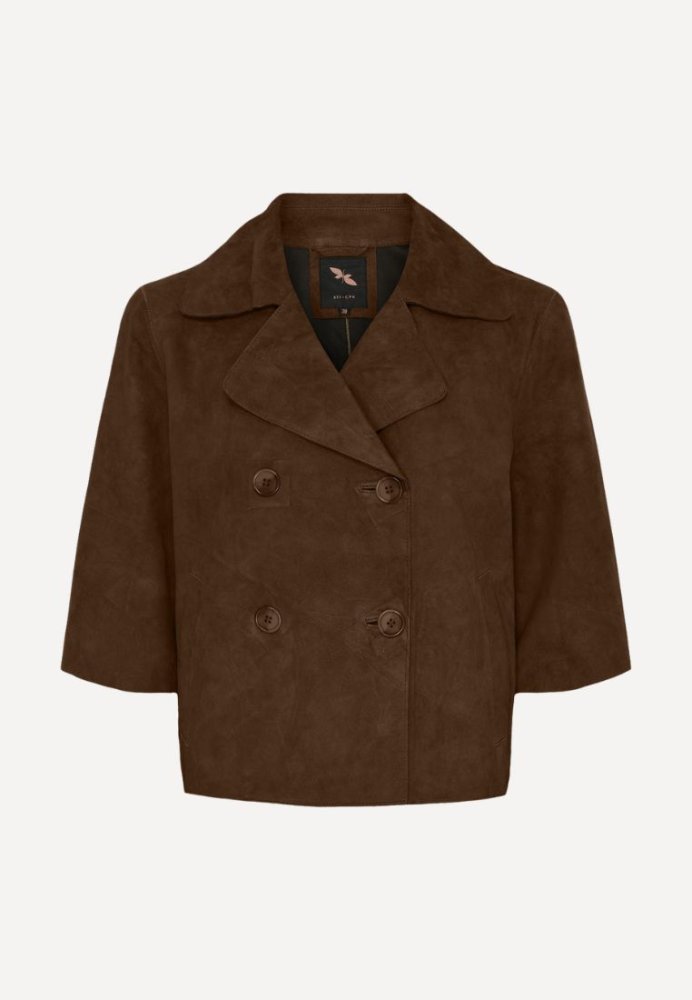 Giulia Suede Jacket fra BTFCPH er en elegant kort trenchcoat i blødt ruskind, som giver et eksklusivt og sofistikeret udtryk. Jakken har korte ærmer og klassiske dobbeltradede knapper, der understreger det tidløse trenchcoat-design. Den lette struktur og den luksuriøse kvalitet gør modellen både behagelig og stilfuld, perfekt til overgangssæsoner og elegante hverdagslooks. To sidelommer fuldender designet med et funktionelt og moderne touch.