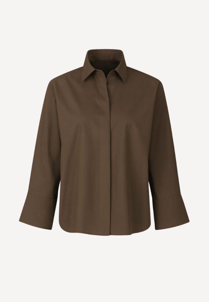 En moderne klassiker fra Stenstrøms – Karoline Shirt er fremstillet i 100% bomuld og har et oversized fit, der giver et afslappet men sofistikeret udtryk. Skjorten er designet med skjult knaplukning med broderi, klassisk flip og elegante "penguin sleeves", som tilfører en eksklusiv detalje. En stilfuld skjorte, der både kan styles med elegante bukser til kontoret eller casual med jeans og sneakers i hverdagen.