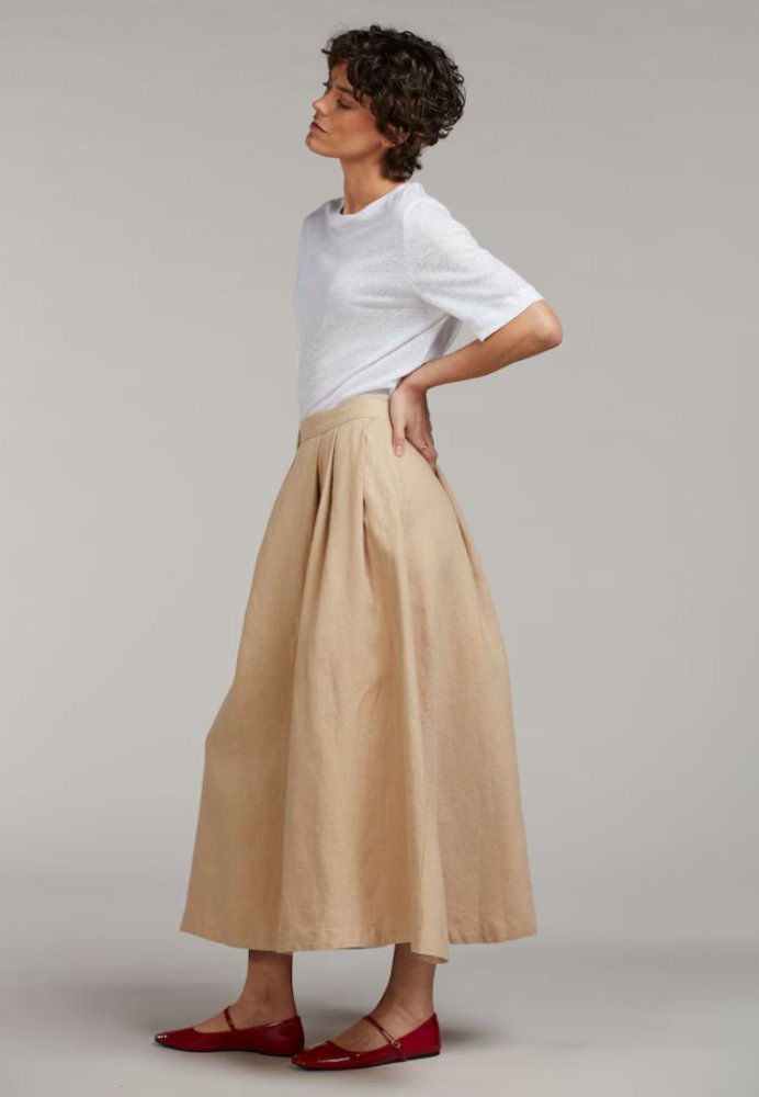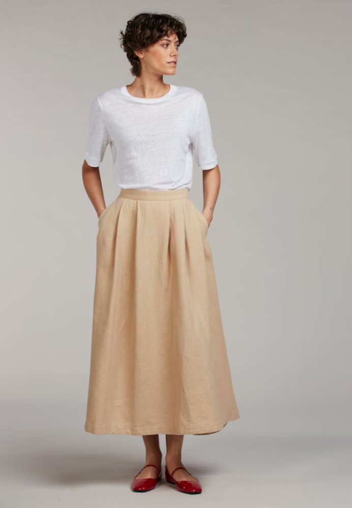 Klassisk nederdel fra Stenströms med et rent og minimalistisk design. Nederdelen er skabt i en let kvalitet med et flot fald og diskrete læg, der giver bevægelse og volume. Den høje talje og enkle silhuet gør den nem at style til både skjorter, strik og T-shirts. En alsidig garderobefavorit med et tidløst og elegant udtryk.