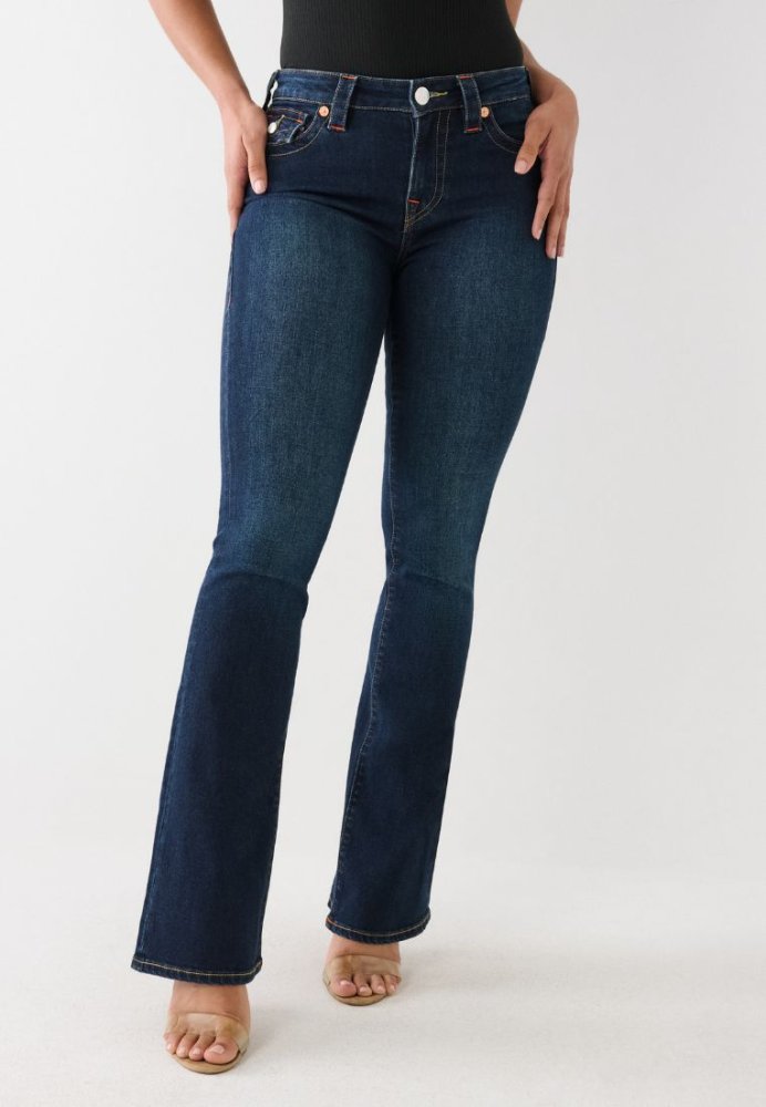 Becca Mid Rise Bootcut Flap Jeans i farven Muddy Waters fra True Religion er et par klassiske jeans med et moderne twist. De har en flatterende bootcut-pasform med let flare, fem lommer og bæltestropper. Jeansene er fremstillet i en blød denimblanding, der giver både komfort og fleksibilitet, og de ikoniske flap-baglommer fuldender looket. Perfekte til både hverdag og aften.