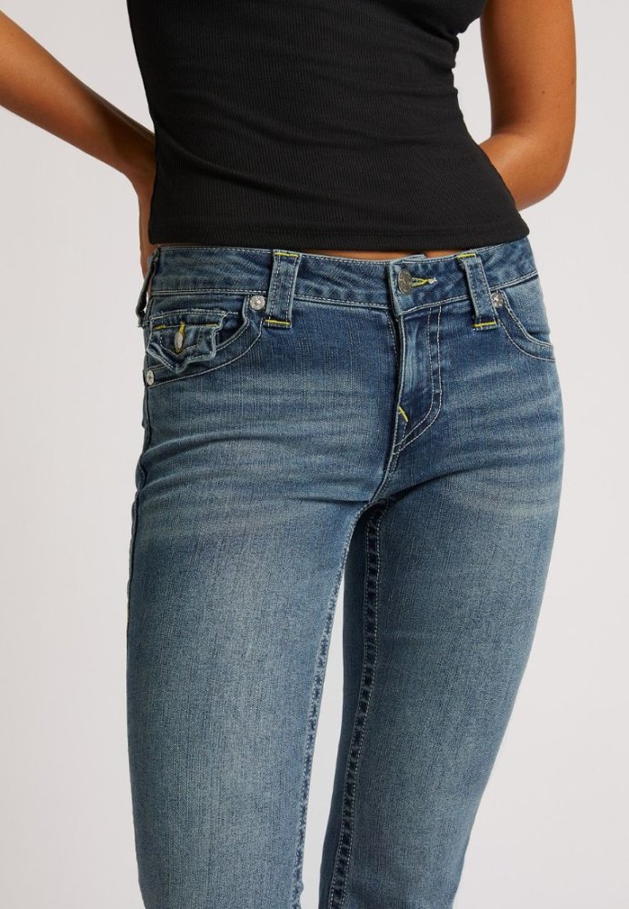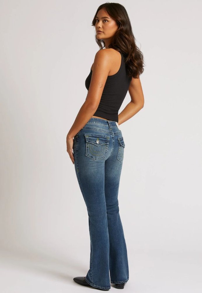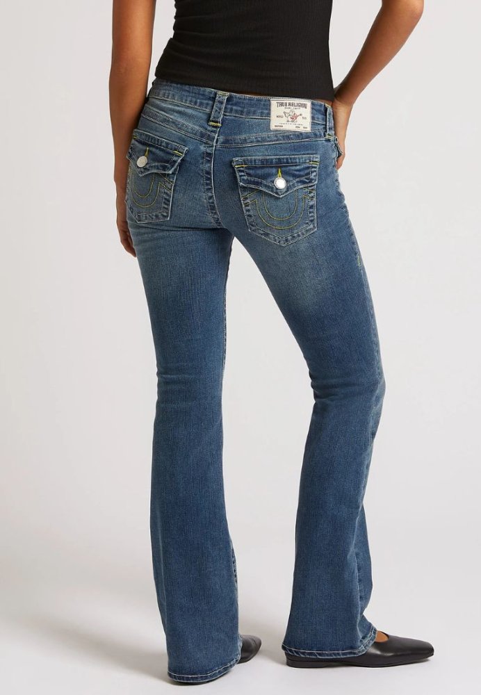 Becca Mid Rise Bootcut Flap Jeans i farven Arabella fra True Religion er et par klassiske jeans med et moderne twist. De har en flatterende bootcut-pasform med let flare, fem lommer og bæltestropper. Jeansene er fremstillet i en blød denimblanding, der giver både komfort og fleksibilitet, og de ikoniske flap-baglommer fuldender looket. Perfekte til både hverdag og aften.