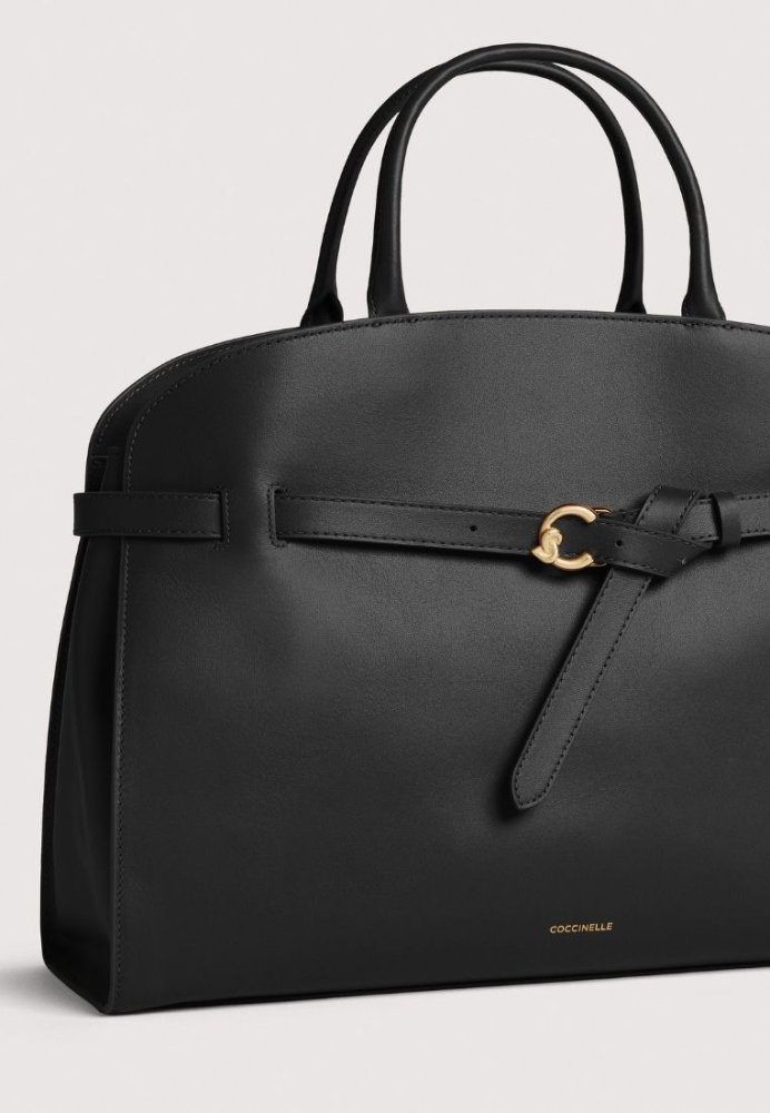Coccinelle Sabine er en elegant og rummelig taske, der leger med kontraster mellem struktur og blødhed og giver et eksklusivt, moderne udtryk. Det ikoniske C-Me logo er gentænkt som en dekorativ bæltedetalje, der tilfører designet et markant og nutidigt twist. Tasken er designet til at blive båret i hånden, men leveres også med en aftagelig og justerbar skulderrem, så den nemt kan bruges crossbody. Tasken er fremstillet i glat kvalitetslæder, som er garvet med specialolier for at opnå en silkeblød overflade. Samtidig er læderet behandlet med resin, der gør det let vandafvisende uden at gå på kompromis med det naturlige look – ideelt til hverdagsbrug. Indvendigt byder Coccinelle Sabine på god plads, tre inderlommer, heraf én med lynlås, samt en praktisk lynlåssplit, der gør organisering enkel og overskuelig. Med magnetlukning, elegante guldfarvede detaljer og et tidløst design er Coccinelle Sabine den perfekte taske til både arbejde og fritid – en stilfuld kombination af italiensk håndværk, funktionalitet og luksus.