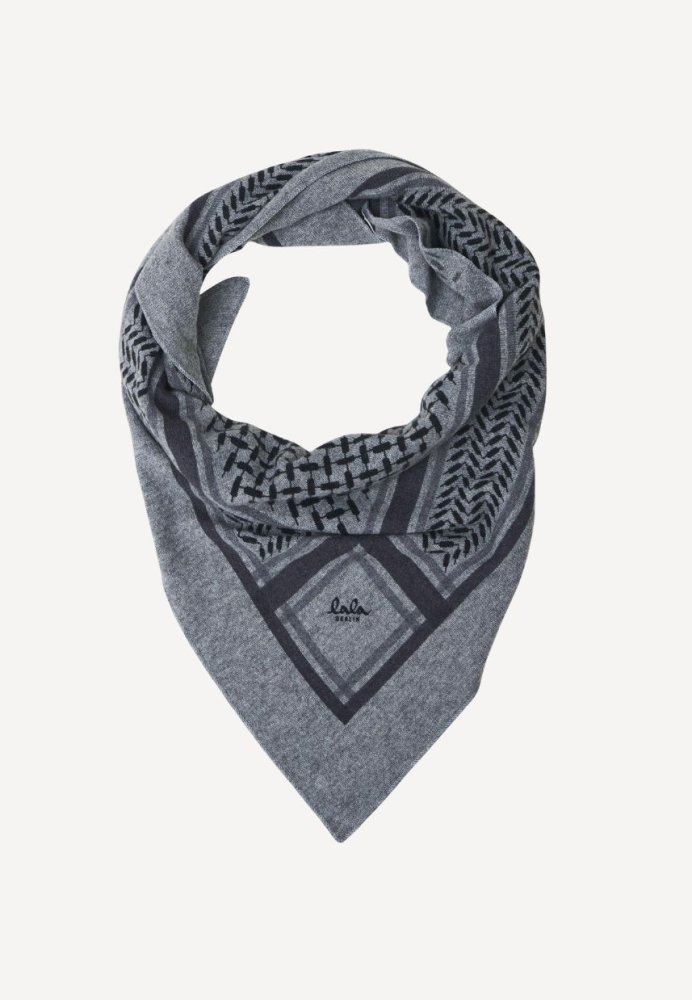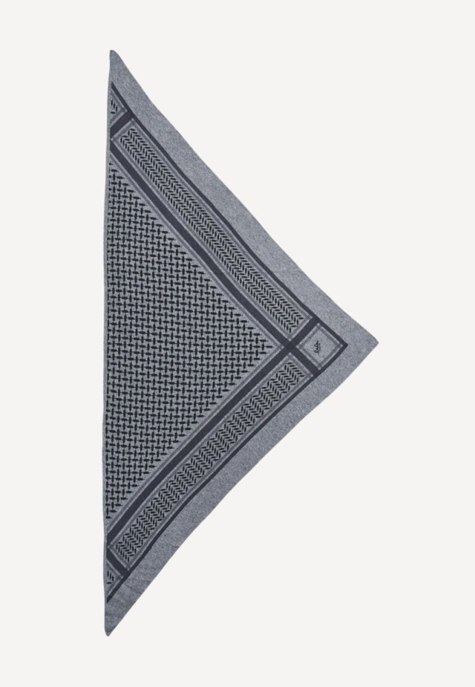 Et luksuriøst trekantet tørklæde fra Lala Berlin i elegant city middlegrey melange med det klassiske kufiya-print. Fremstillet i blød, let og eksklusiv cashmere, der både holder dig varm og giver et stilrent finish til ethvert outfit – perfekt som både tørklæde og sjal i garderoben.