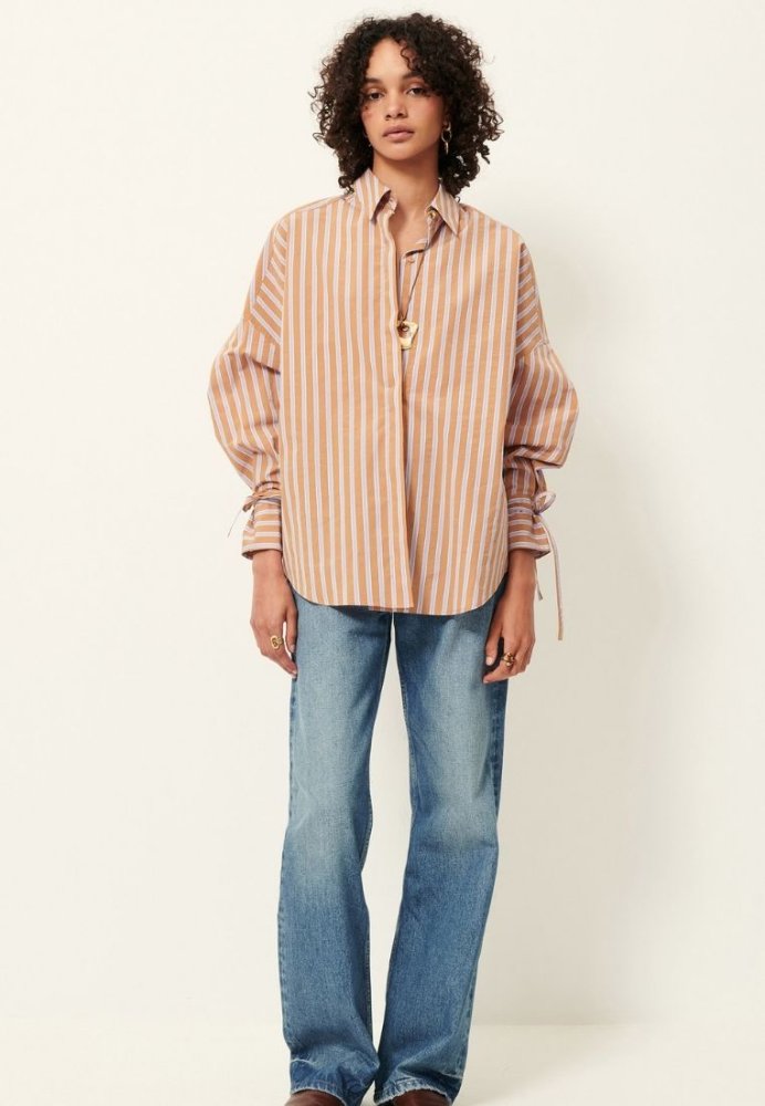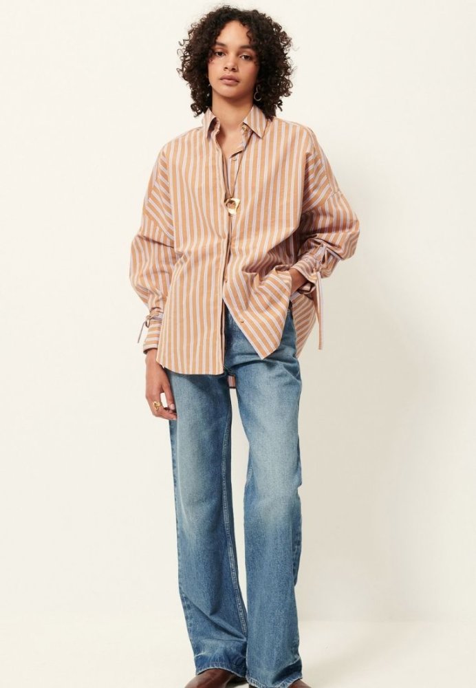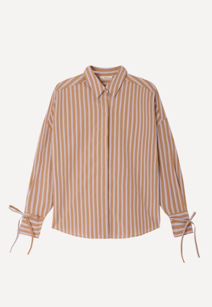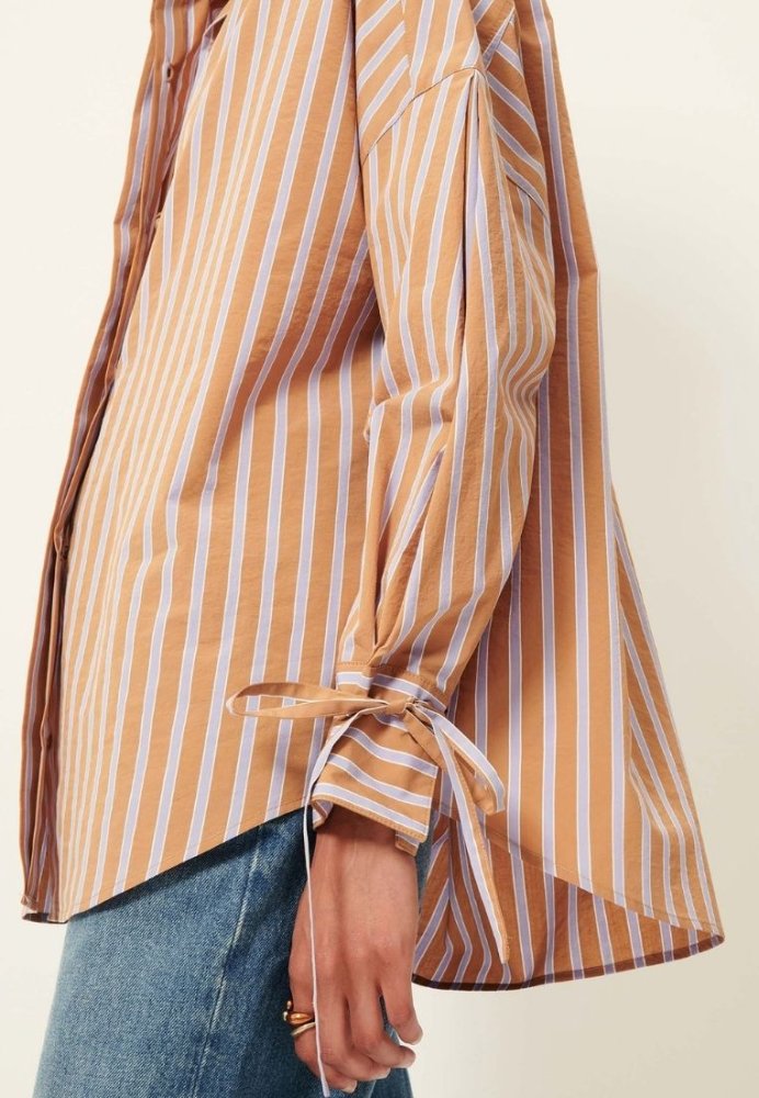Elegant skjorte i en let og struktureret kvalitet, der giver et feminint og moderne udtryk. Skjorten har fine bindedetaljer ved ærmerne, som tilfører et stilfuldt twist og gør den nem at style både til hverdag og mere formelle anledninger. Den lette kvalitet gør skjorten behagelig at have på hele dagen.