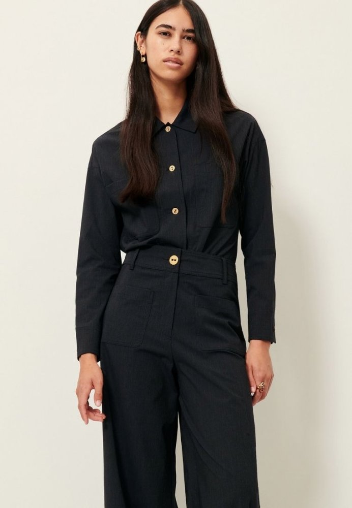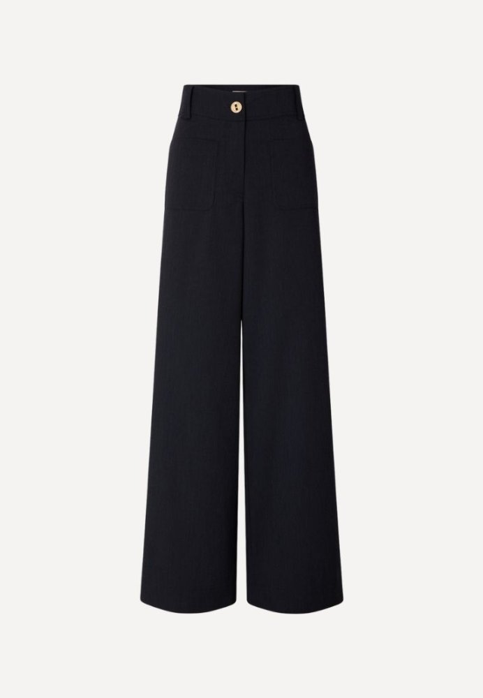 Manhatti er et par elegante, vide bukser med et moderne og afslappet udtryk. Bukserne har en flot, bred benvidde, der giver et let og flydende fald og sikrer en behagelig pasform hele dagen. Materialeblandingen med viskose og elastan gør bukserne bløde, komfortable og nemme at bevæge sig i, mens polyesteren bidrager til et mere struktureret look. Manhatti er nemme at style både til hverdagsbrug og mere formelle anledninger.