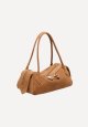 Elegant skuldertaske med et stilrent og sofistikeret design. Tasken har en aflang silhuet og fine dekorative detaljer foran, der giver et eksklusivt udtryk. De lange hanke gør den behagelig at bære over skulderen, mens lynlåslukningen sikrer, at dine vigtigste ejendele opbevares sikkert. En tidløs taske, der nemt kan styles til både hverdag og mere festlige anledninger.