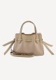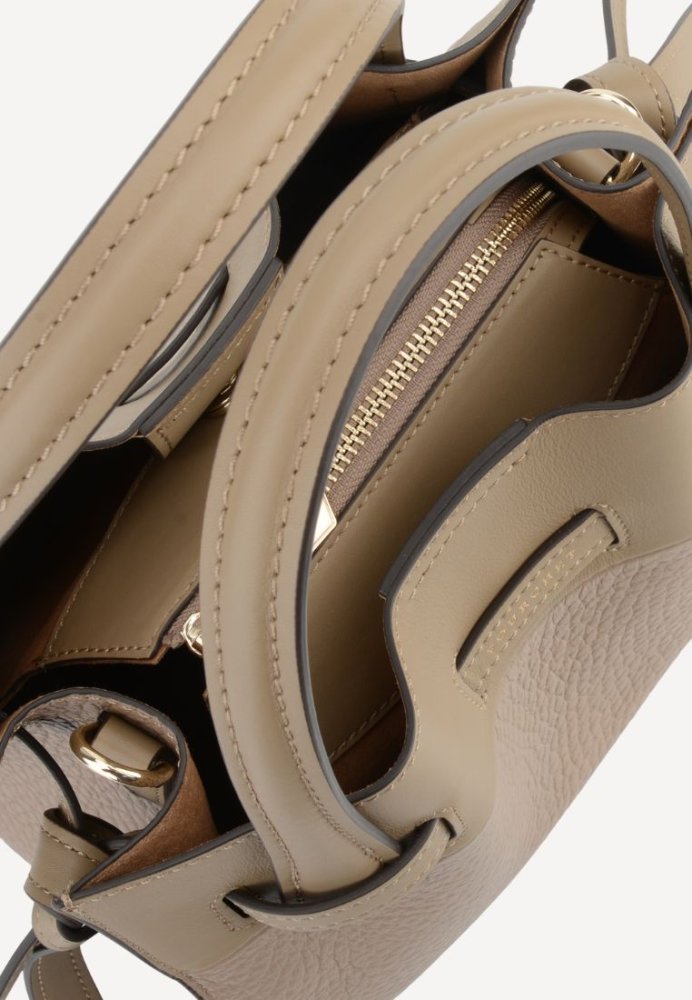 Indvendigt er tasken opdelt i tre rum, herunder et praktisk lynlåsrum i midten samt to åbne rum med magnetlukning, der gør det nemt at holde styr på dine vigtigste ejendele. Tasken kan bæres i hånden med de korte hanke eller over skulderen med den aftagelige rem. De dekorative stropper i siderne giver et elegant udtryk og tilføjer et moderne twist til designet.